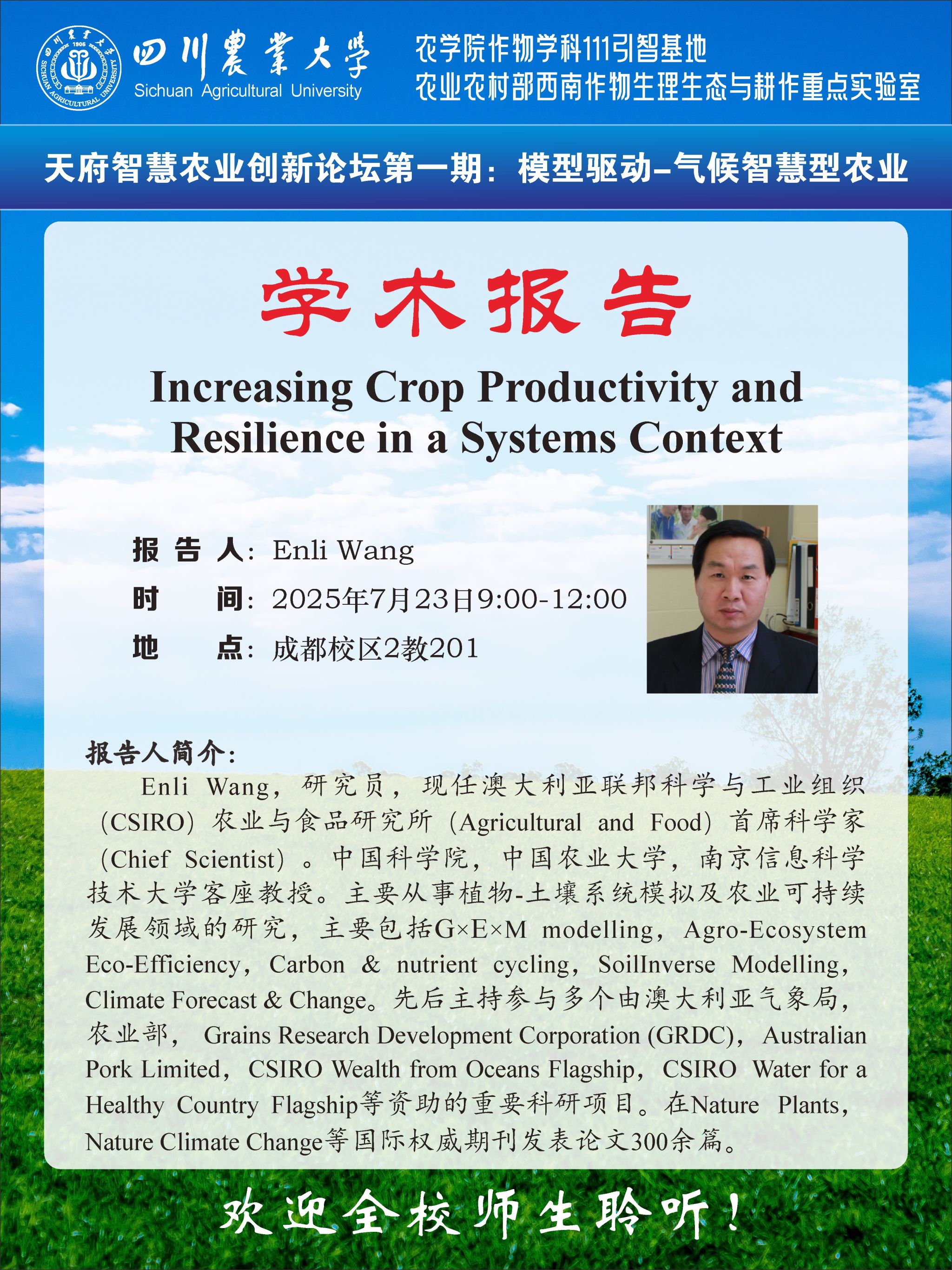 作物学天府智慧农业创新论坛-Increasing Crop Productivity and Resilience in a Systems Context