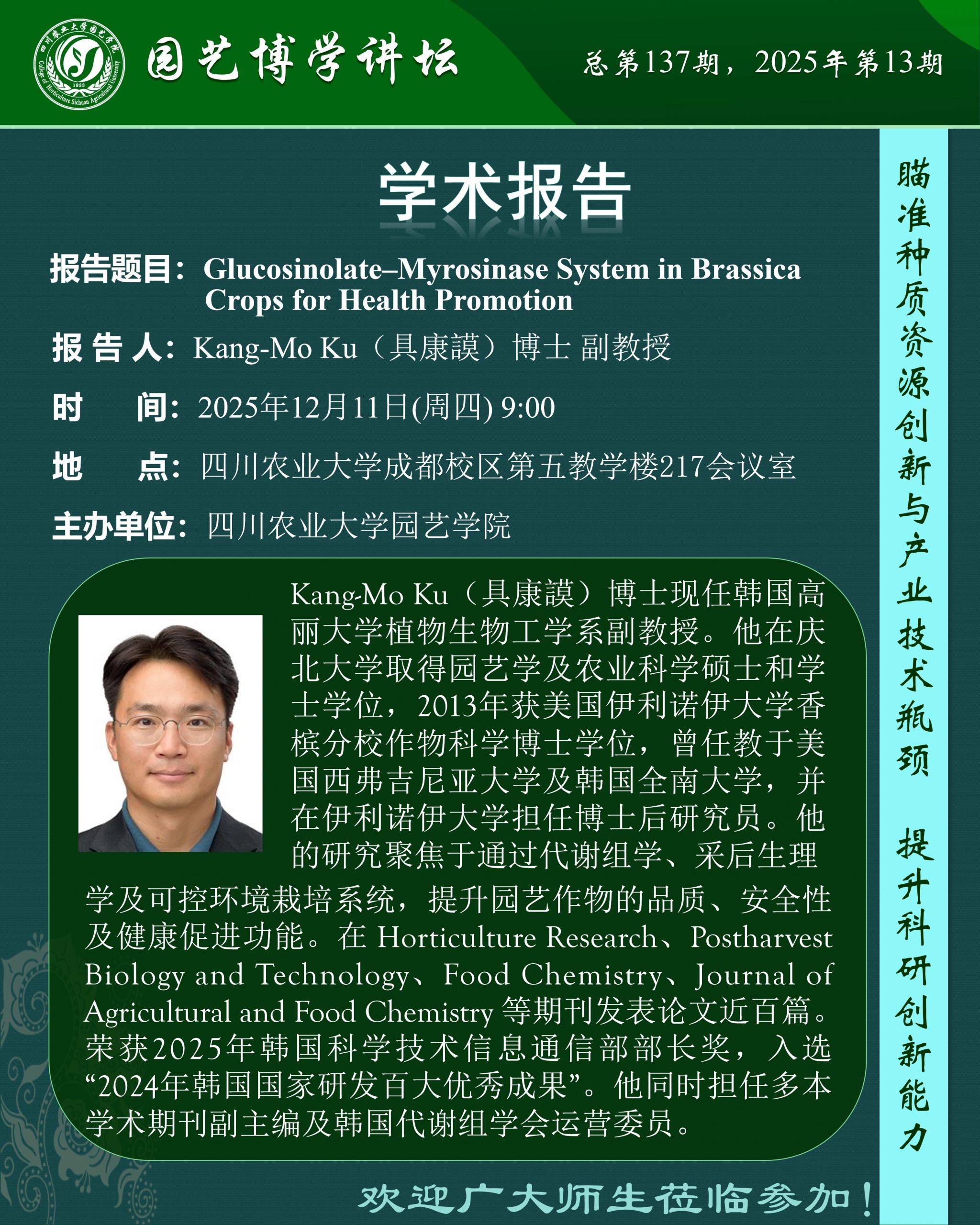 园艺博学讲坛——Glucosinolate–Myrosinase System in Brassica Crops for Health Promotion